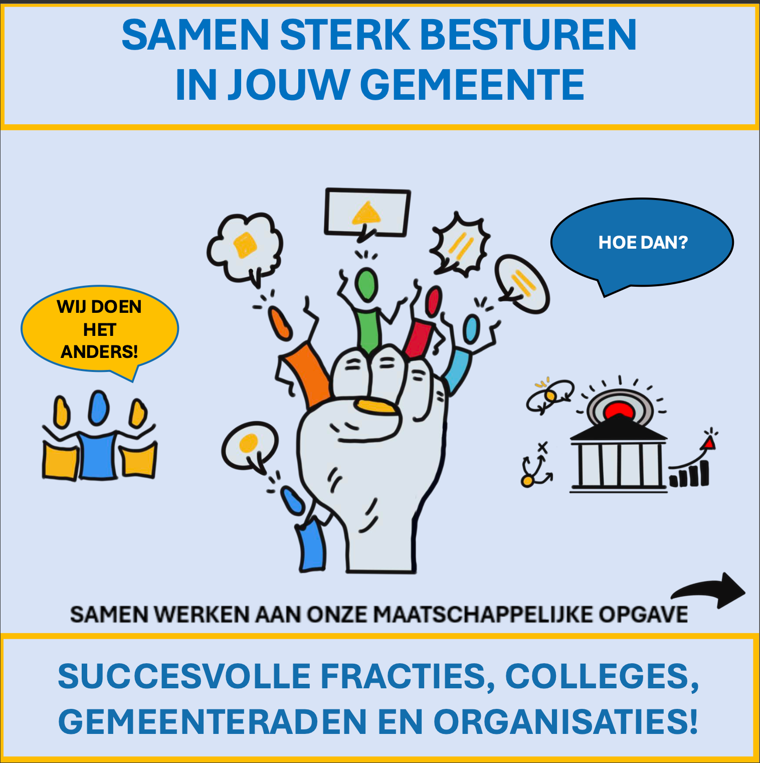Jij wil in jouw rol succesvol zijn in een constructief samenwerkende raad, een sterk college, een winnende fractie en een overstijgend bestuurlijk ambtelijk samenspel in jouw gemeente.
